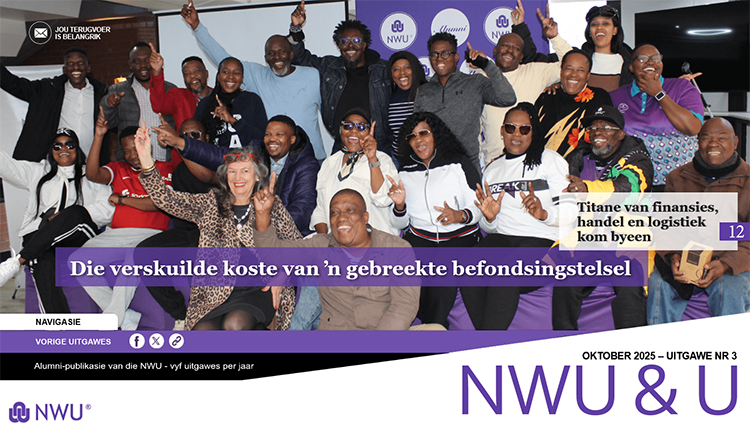 Baie welkom by ons alumnitydskrif, die NWU & U. Hierdie 'sleutel' ontsluit die NWU-wêreld waar innovasie en akademiese uitnemendheid hand aan hand gaan. In hierdie tydskrif kan julle ook lees van jul alma mater se betrokkenheid in omliggende gemeenskappe en van die inspirerende prestasies van mede-alumni.