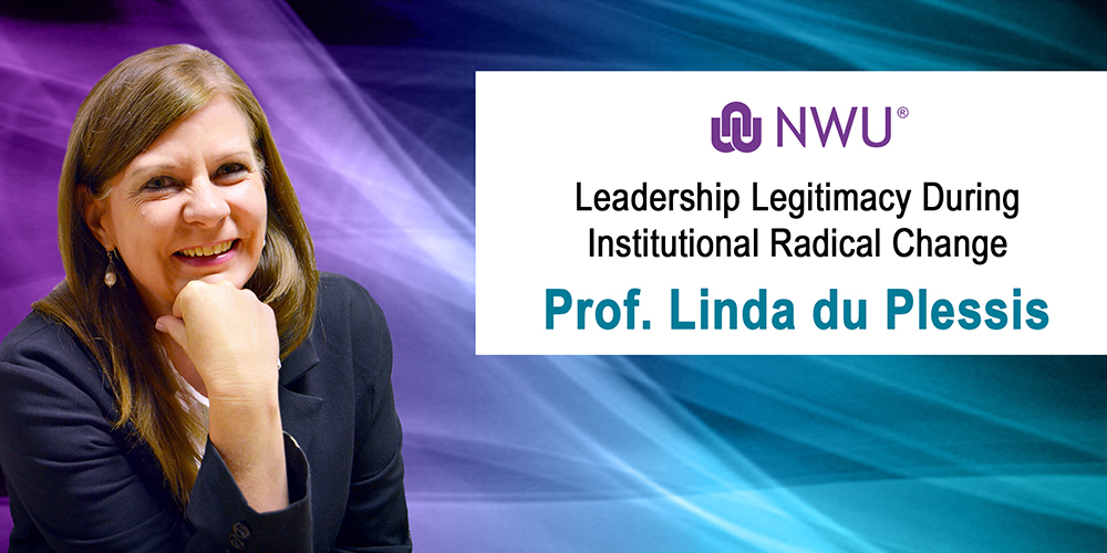 The Dean of the Faculty of Humanities at the North-West University, Prof. Pamela Maseko invites you to a presentation by Prof. Linda du Plessis. Prof Linda du Plessis is the Vice-Principal and the Deputy Vice-Chancellor: Planning and campus operations at the NWU. She recently completed a Professional Doctorate in Higher Education Management at the University of Bath, UK. She will share the findings of her research in which she conducted a phenomenological study on sense-making of legitimacy during radical change in higher education.