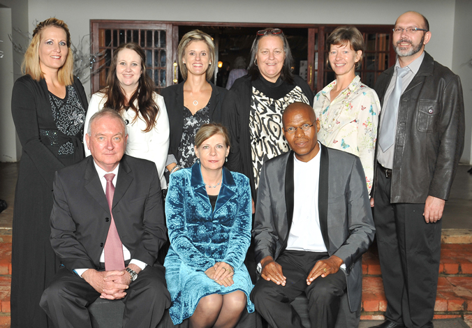 Die wenners van die Vaaldriehoekkampus is agter van links dr Chrisna Botha-Ravyse (TOU), Lana Harmse (TOOU), Olive Stumke (TOOU), Naomi du Plessis (TOOU), Anneke Butler (TOU) en Johan Steytler (TOU). Voor is prof Tinie Theron, waarnemende viserektor, prof Linda du Plessis, waarnemende kampusrektor en prof Dan Kgwadi, visekanselier.