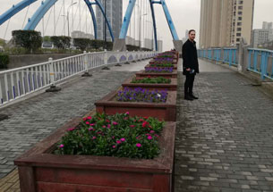 The days before the virus struck: Etienne on one of the bridges that he and Marianke cross on the way to their complex.